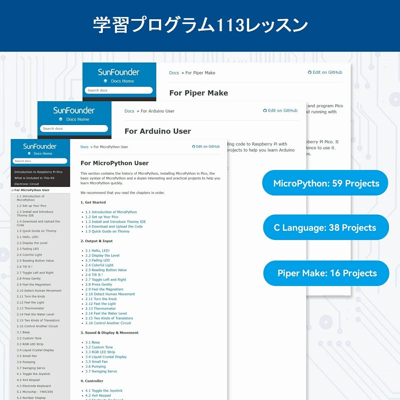 あらゆるレベルのプログラマーのニーズを満たすために、Raspberry Pi Pico キット究極版には以下のコースを提供しています。